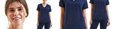 - V-neck style with left chest pocket with combined mobile and pen pocket